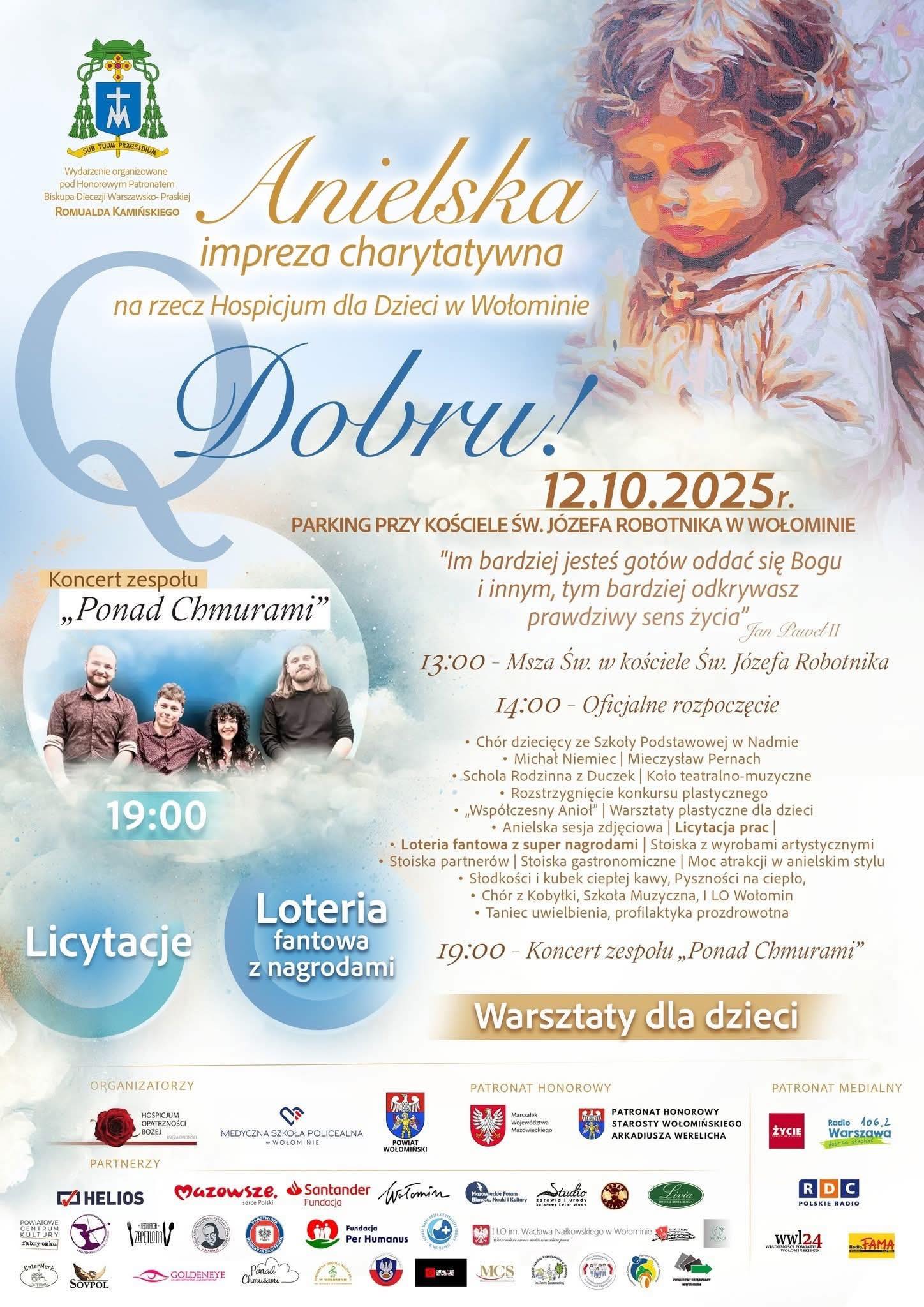 Wydarzenie organizowane pod honorowym patronatem Biskupa Diecezji Warszawsko-Praskiej Romualda Kamińskiego. W programie przewidziano występy artystyczne, warsztaty dla dzieci, licytacje i loterię fantową, a kulminacyjnym punktem będzie wieczorny koncert zespołu „Ponad Chmurami”. Dochód z imprezy zostanie przeznaczony na wsparcie Hospicjum dla Dzieci w Wołominie.