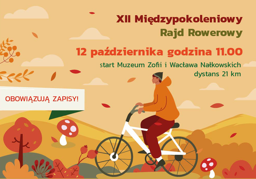 W niedzielę 12 października 2025 roku wyruszy w trasę XII Międzypokoleniowy Rajd Rowerowy, organizowany we współpracy z Wołomińską Radą Seniorów. Startujemy o godzinie 11.00 z parku przy Muzeum Zofii i Wacława Nałkowskich w Wołominie. Zbiórka uczestników będzie od strony ul. 1 Maja. Liczba miejsc jest ograniczona i obowiązują zapisy.