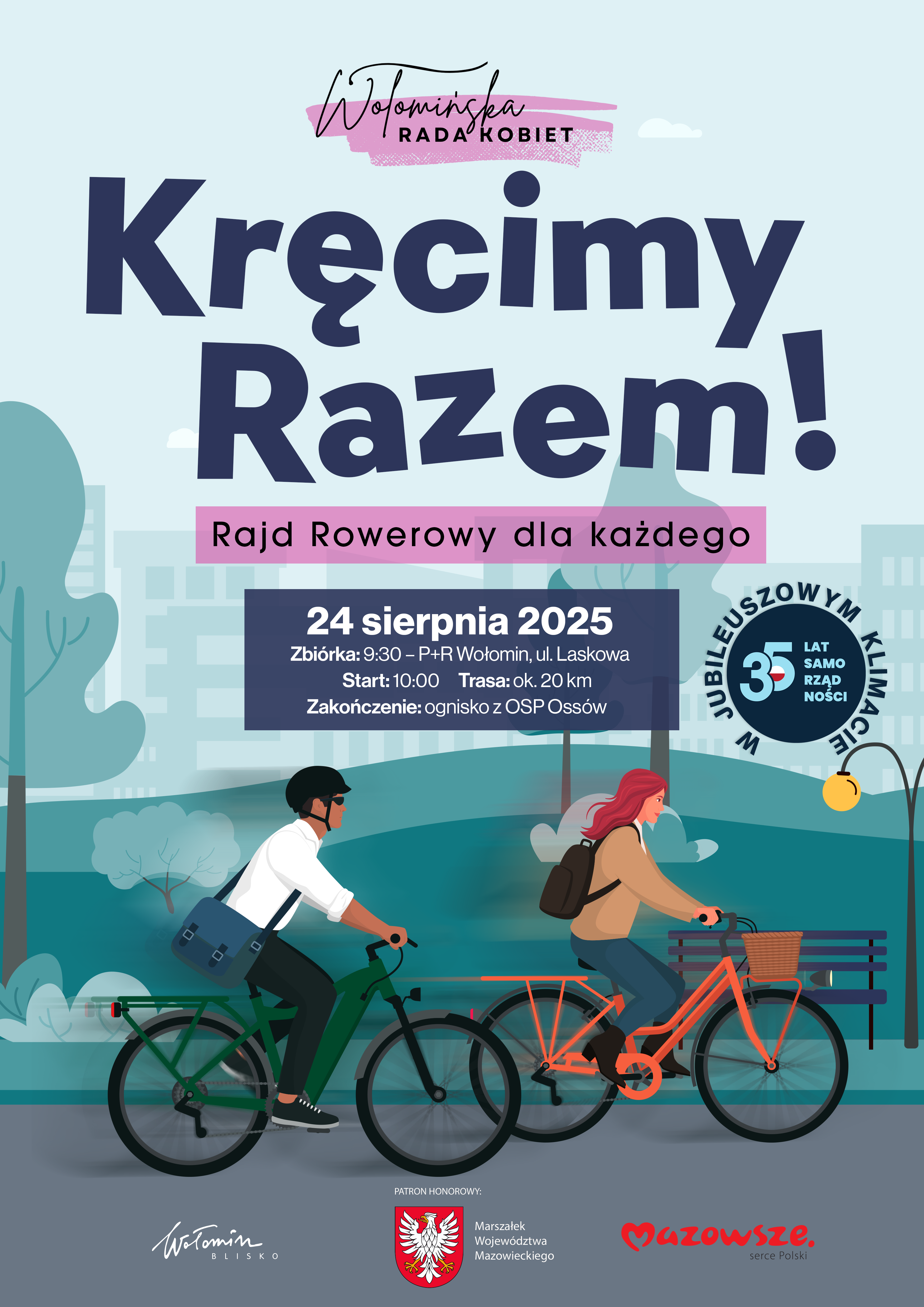 Wołomińska Rada Kobiet wraz z Gminą Wołomin zapraszają wszystkich mieszkańców na bezpłatny rajd rowerowy, w którym każdy – niezależnie od wieku i kondycji – znajdzie coś dla siebie. To doskonała okazja, by spędzić aktywnie czas, poznać nowych ludzi i odkryć uroki naszej gminy z perspektywy roweru.